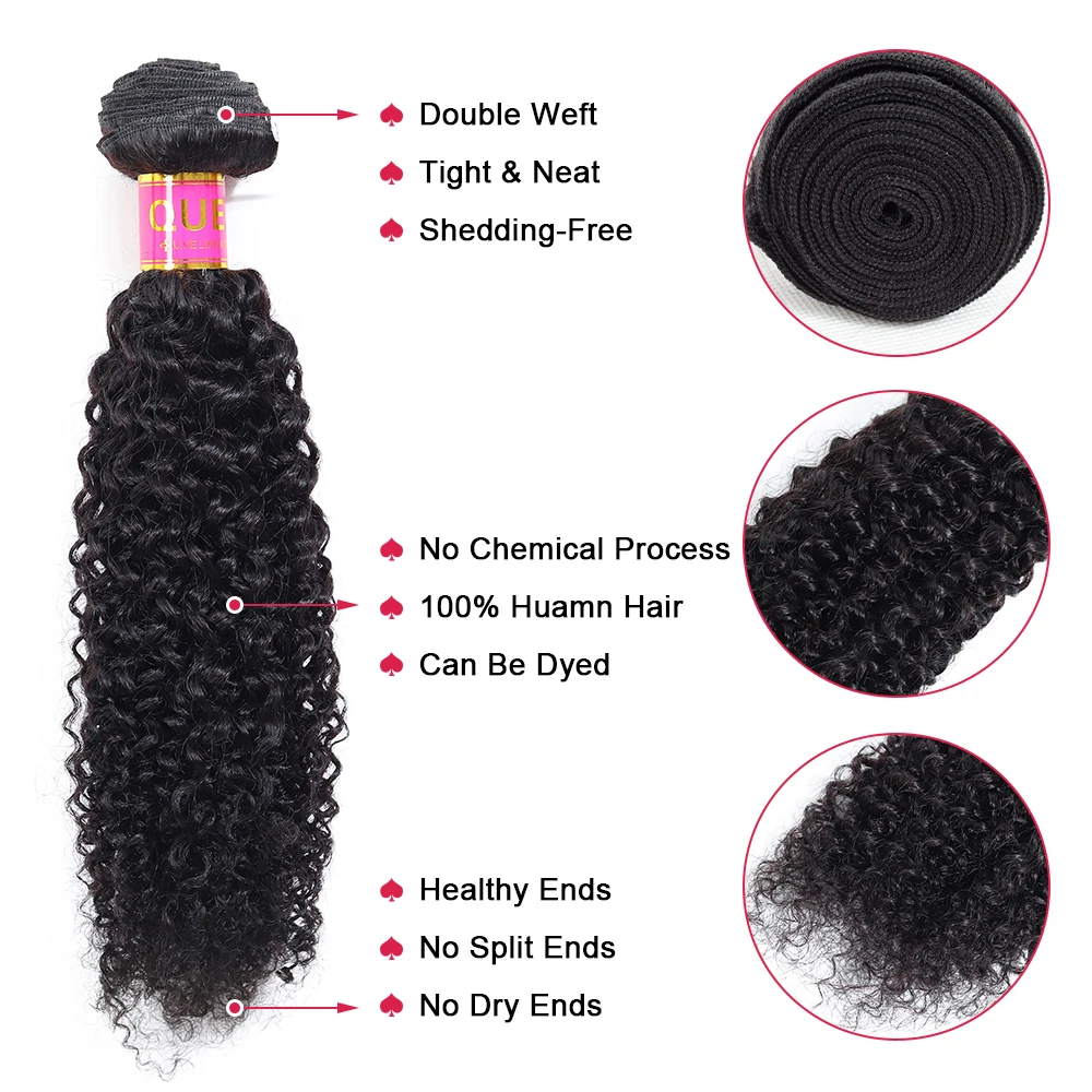 Kinky Curly Human Hair Bundles 3 Bundles Double Weft Malaysian Human Hair Bundles 100% Remy Human Hair Weave Bundles Queen Hair